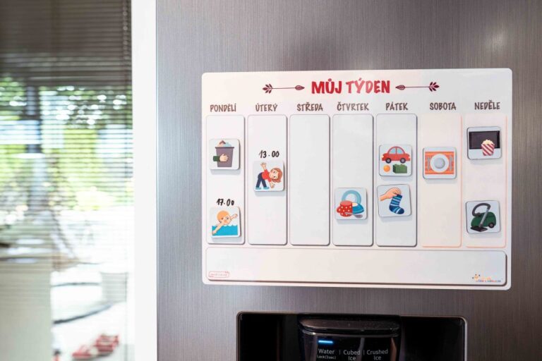 Pomoci vám může náš magnetický obrázkový kalendář, který dětem nabízí přehledný a srozumitelný systém, jak se naučit organizovat den, rozlišit mezi povinnostmi a volným časem a vytvořit si zdravé rituály.