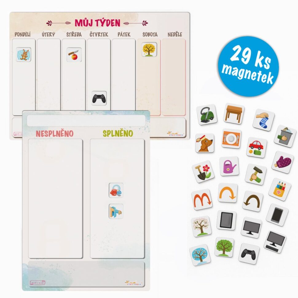 Týdenní magnetický kalendář, to-do tabulka + sada magnetek